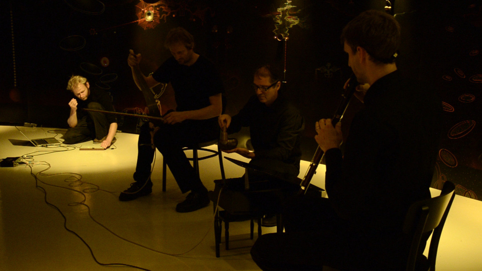 Concert – Soundscape 2014 Consert /happening - Visningsrommet USF, 2014 Musicians improvising in dialogue with Hvoslef´s sound installation «Lydlandskap» Musicians: Knut Vaage, toypiano Jostein Gundersen, recorder Søren Andreasen, sound installation and Monome Arne Sandvoll, saw