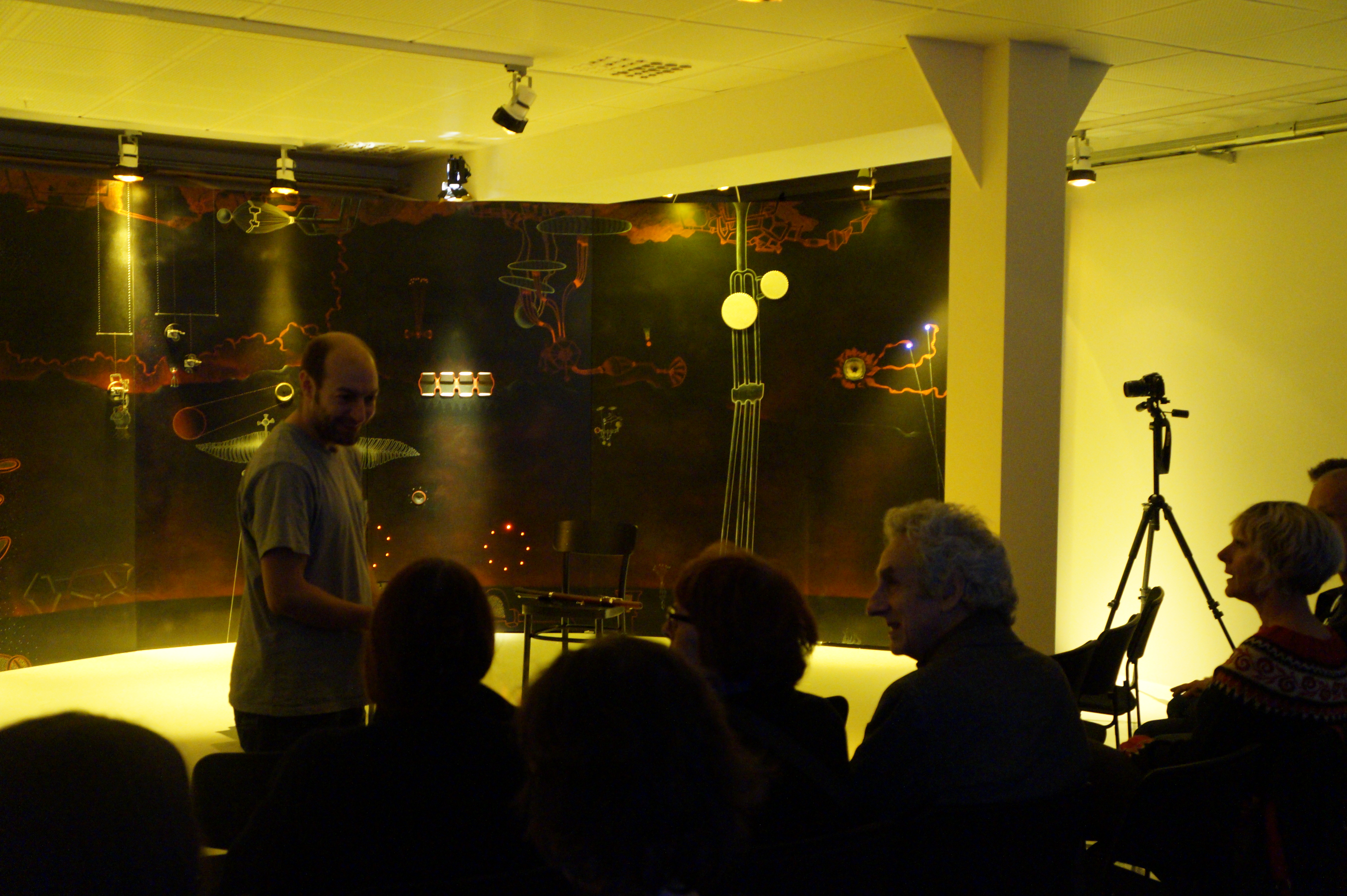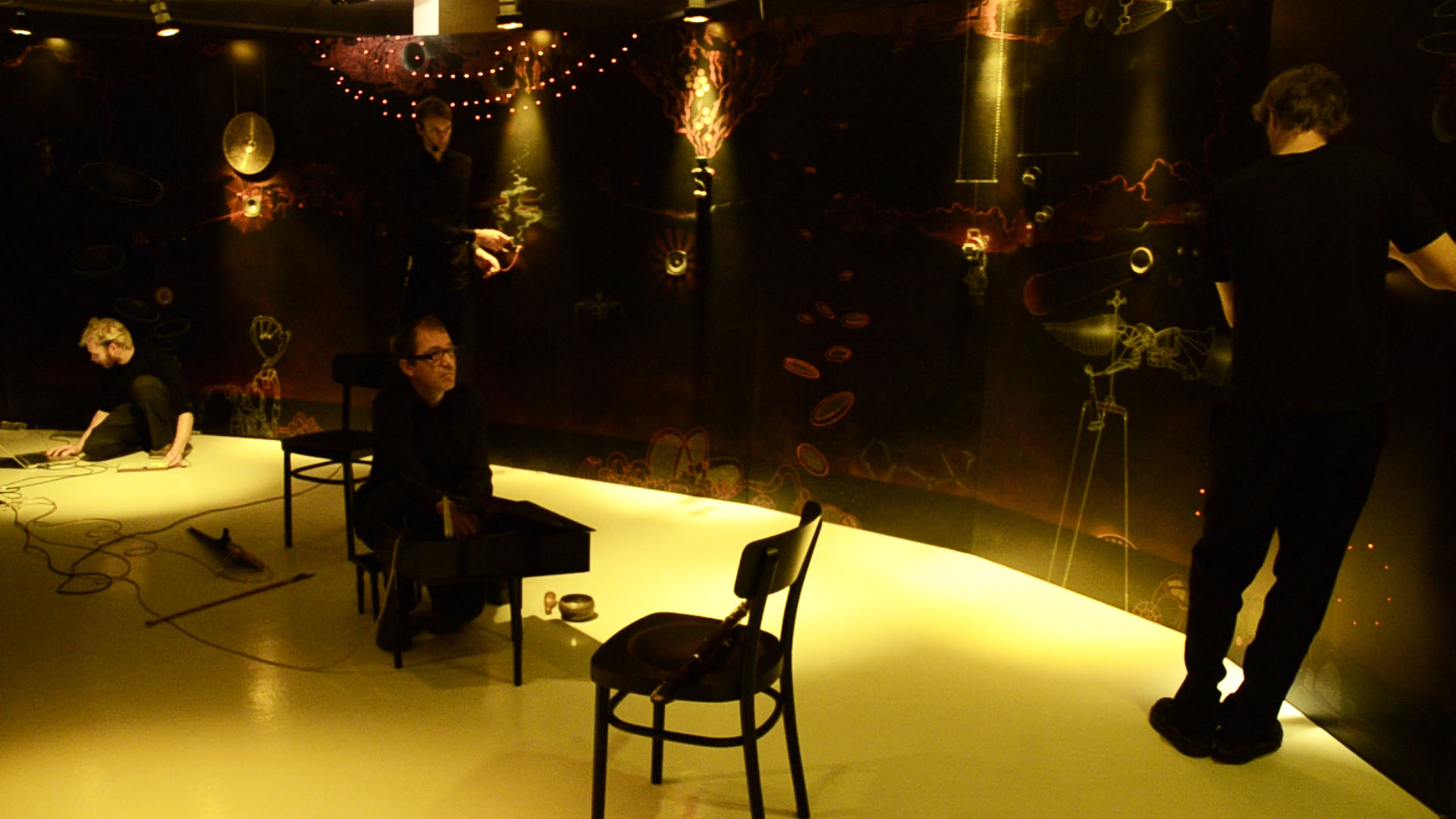 Concert – Soundscape 2014 Consert /happening - Visningsrommet USF, 2014 Musicians improvising in dialogue with Hvoslef´s sound installation «Lydlandskap» Musicians: Knut Vaage, toypiano Jostein Gundersen, recorder Søren Andreasen, sound installation and Monome Arne Sandvoll, saw