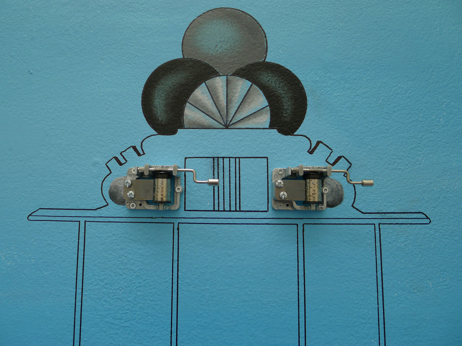 Triptycon Triptycon with music boxes, USF, 2011 Analog, temporary sound installation made for the jazz festival, Nattjazz Wallpainting: Acrylic paint, markers and music boxes